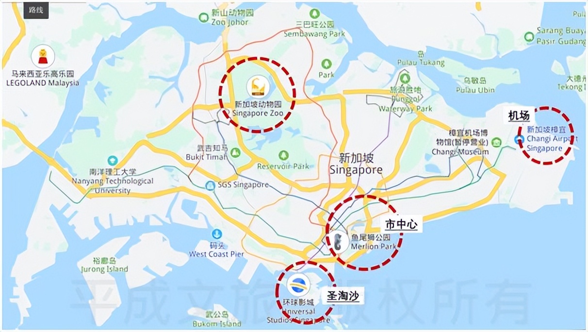 新加坡3大动物园都聚集在新加坡北部,无论从樟宜机场、圣淘沙还是市中心出发,打车都约半小时。从3大动物园搭乘专属接驳巴士到裕廊飞禽公园,车程约15分钟|平成文旅摄制