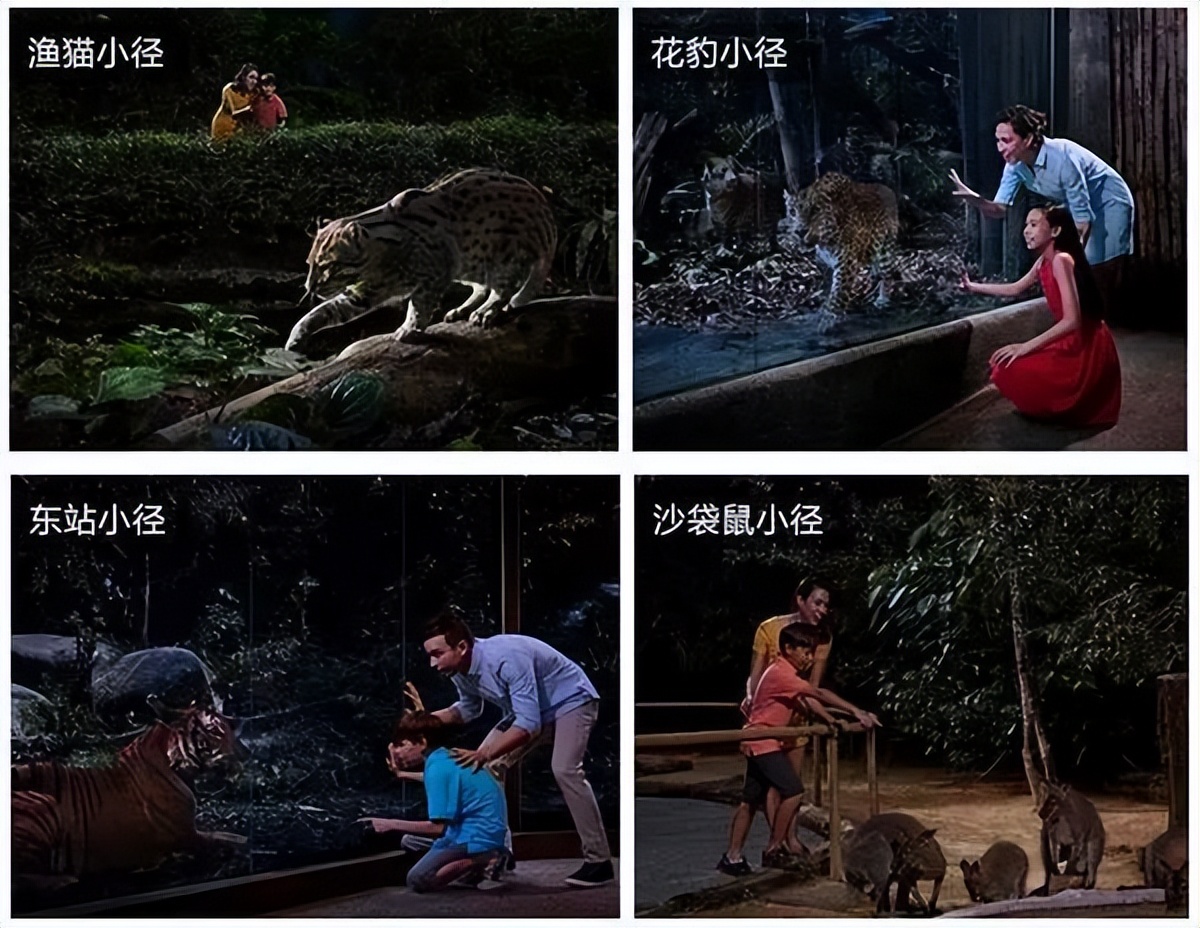 3、花豹小径:观看展览室巨型玻璃窗内的花豹,接着走入红树林小道和大鼯鼠园,体验动物在周围飞翔跳跃
