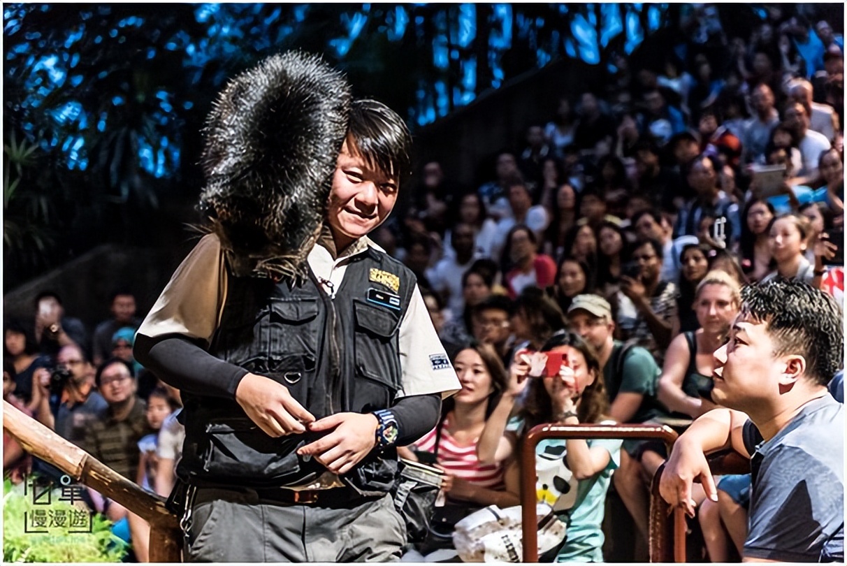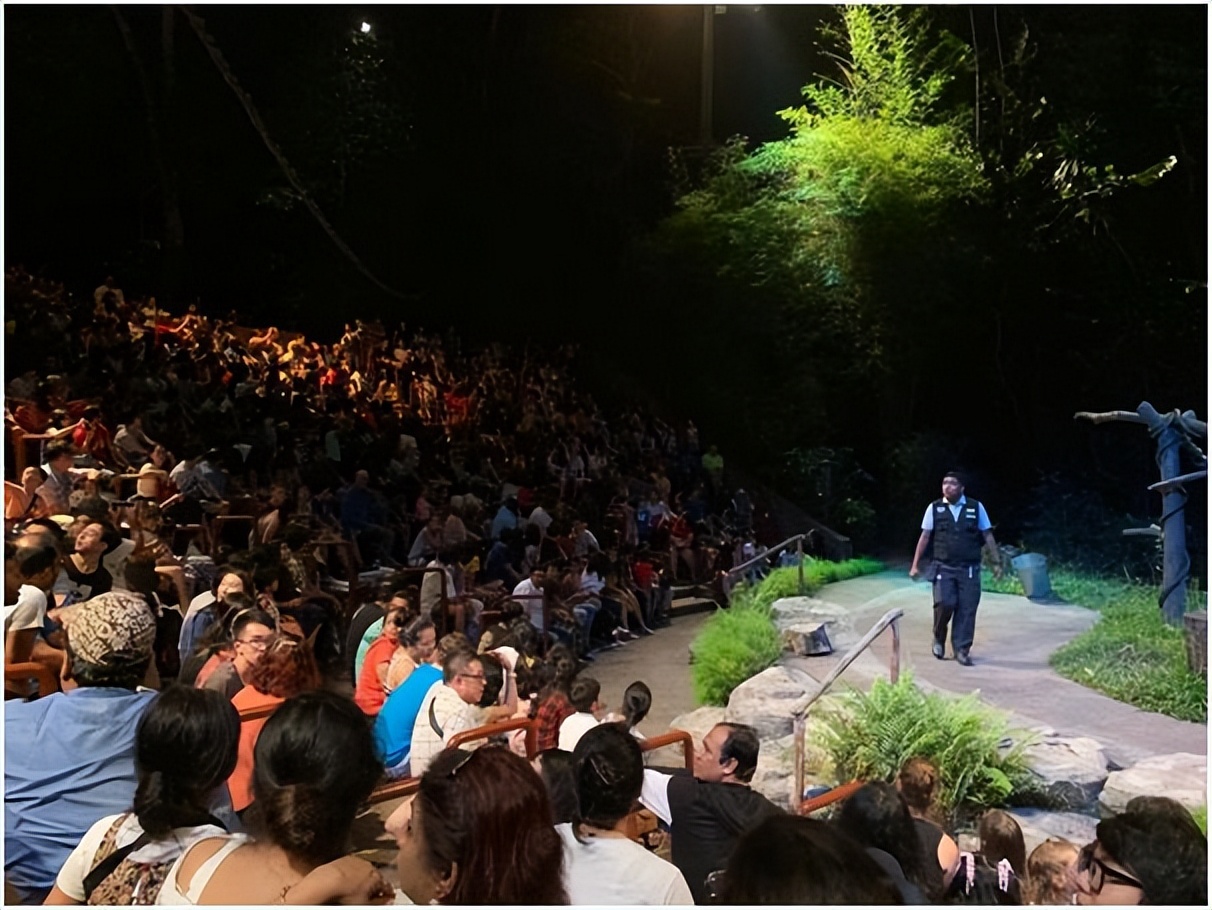 在传统动物园的教育意义与现代主题乐园的娱乐体验之间,新加坡夜间野生动物园确实取得平衡。能做到此的关键,是园区每天上演的2个大型表演(各3-4个场次)。2个表演一是“婆罗洲土著部落喷火秀”(Thumbuakar Performance),一是“夜晚的精灵”(Creature of the Night Show,内容为饲养员与动物的互动脱口秀);前者气氛惊险、刺激、动感,后者主打温馨、机智、可爱,两个演出相互搭配,让动物园摆脱走马看花的静态氛围,成为有情绪起伏的游赏体验,真正走心。