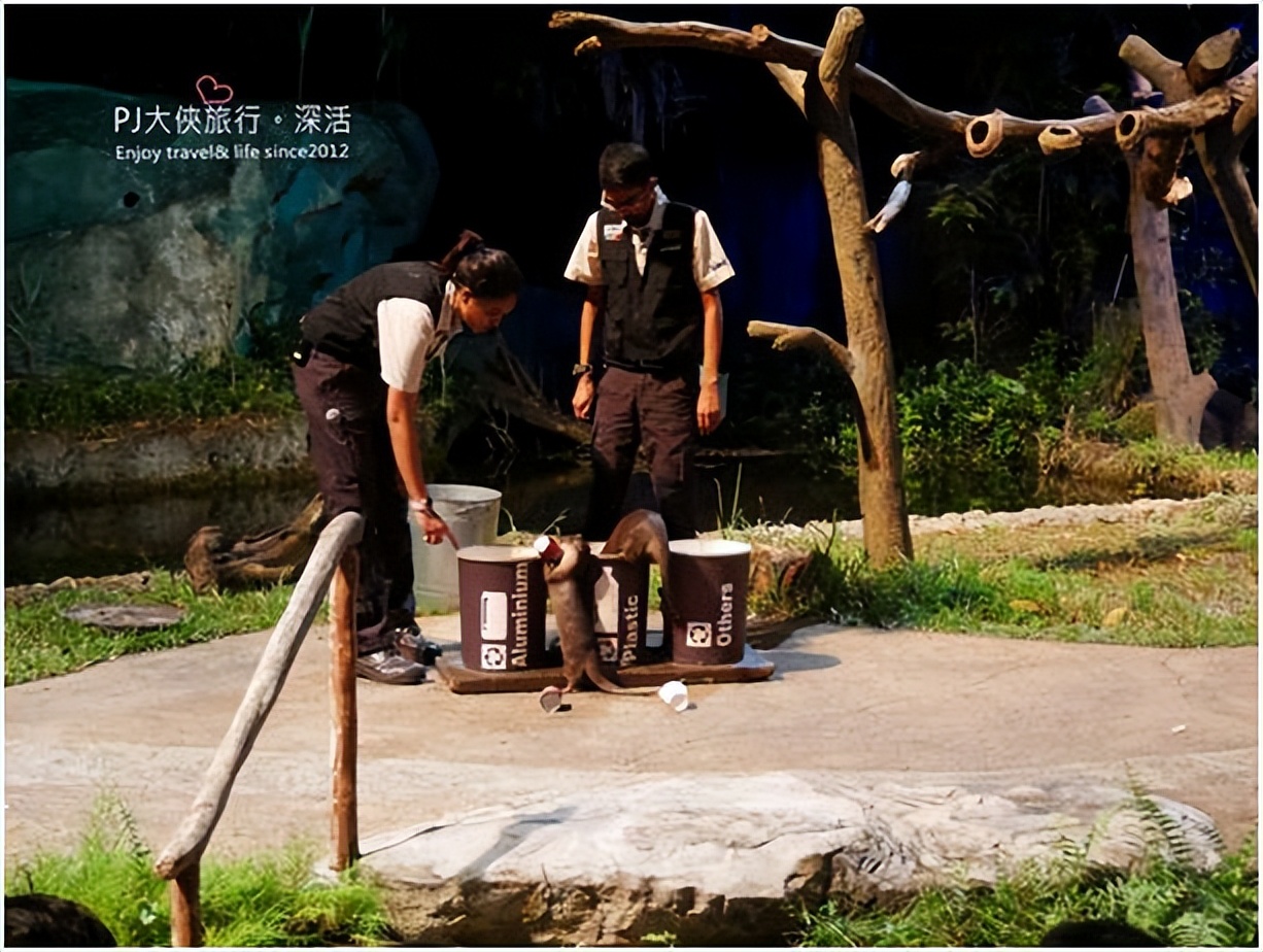 加重主持人的戏份,能增加表演的可控性,同时降低动物的演出劳动。即使是动物出场的桥段,也以“本色出演”为宗旨:让动物展演如嗅觉、进食、跳跃(辅以食物诱导)、飞翔等本能行为。而像是让水獭示范正确垃圾分类的桥段,寓教于乐,也令游客印象深刻(网络搜寻相关游记,可看到大量的纪录分享)。
