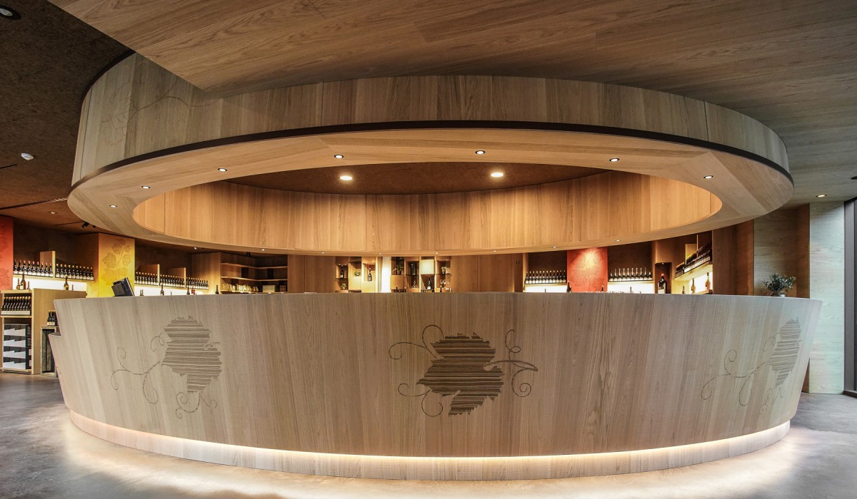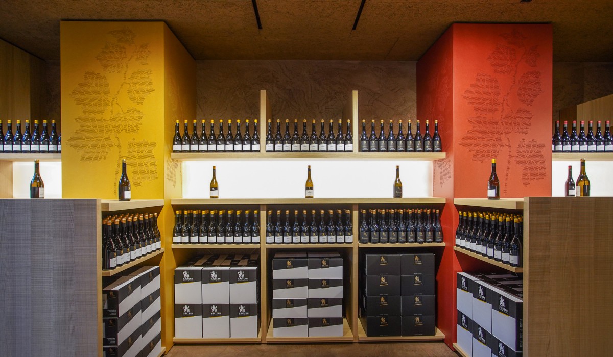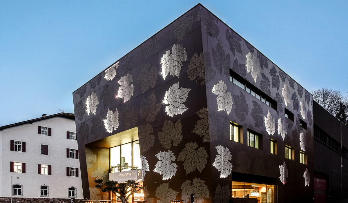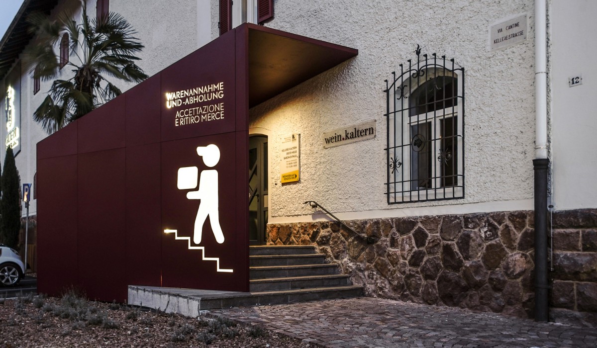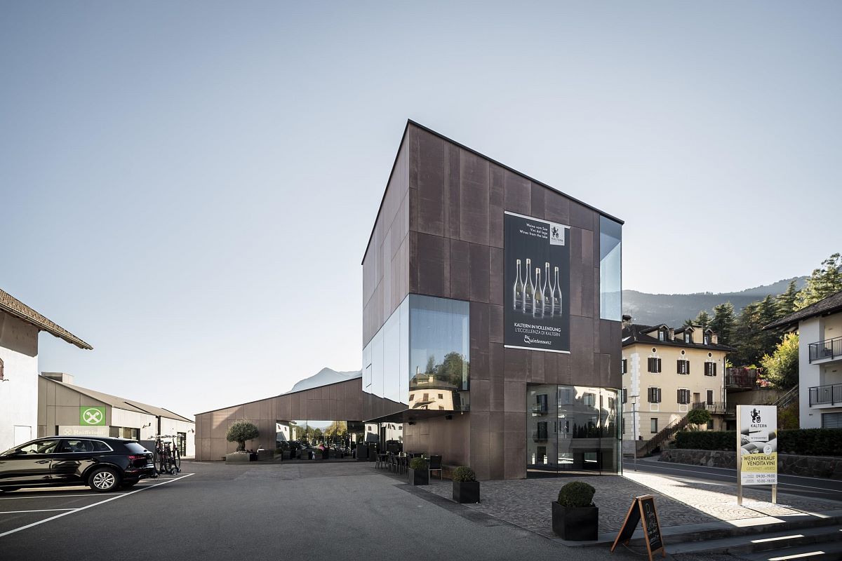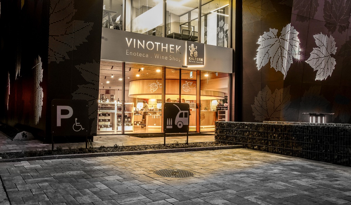 葡萄酒中心位于南蒂罗尔葡萄酒之路上。在其宜人的氛围中,您可以近距离观察并购买 Kellerei Kaltern 和 Baron di Pauli 酒厂的产品。酒庄为了凸显自己对风土的执着,以葡萄叶子为主要元素装饰内外,起到了非常明显的标志性作用,让人过目不忘,容易记住。