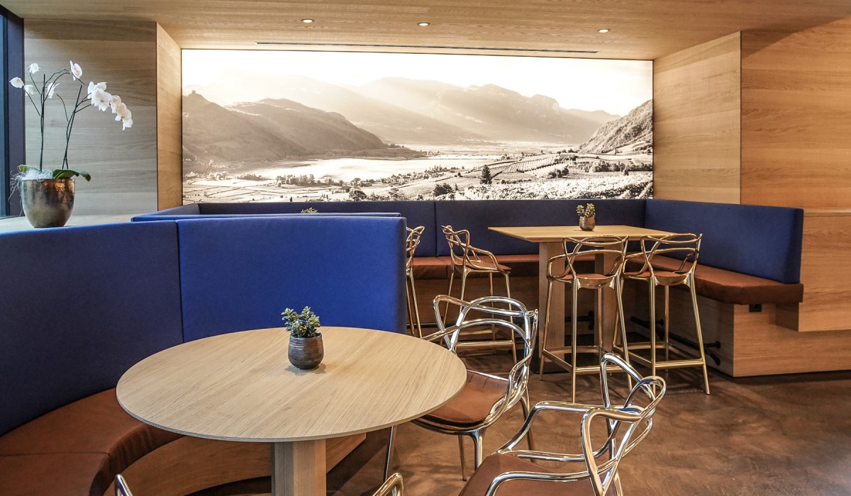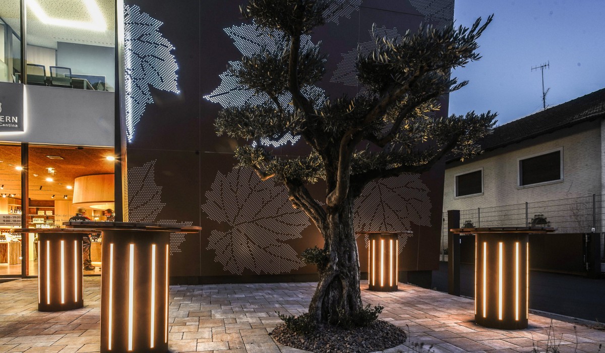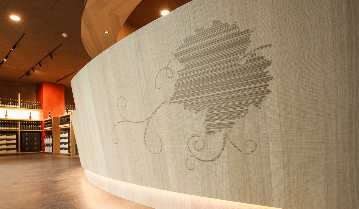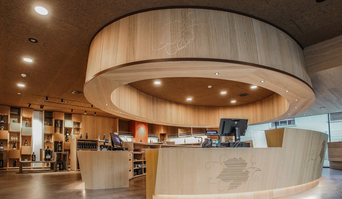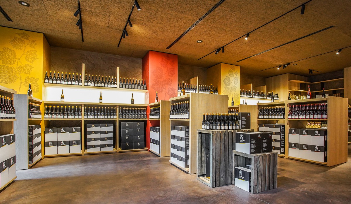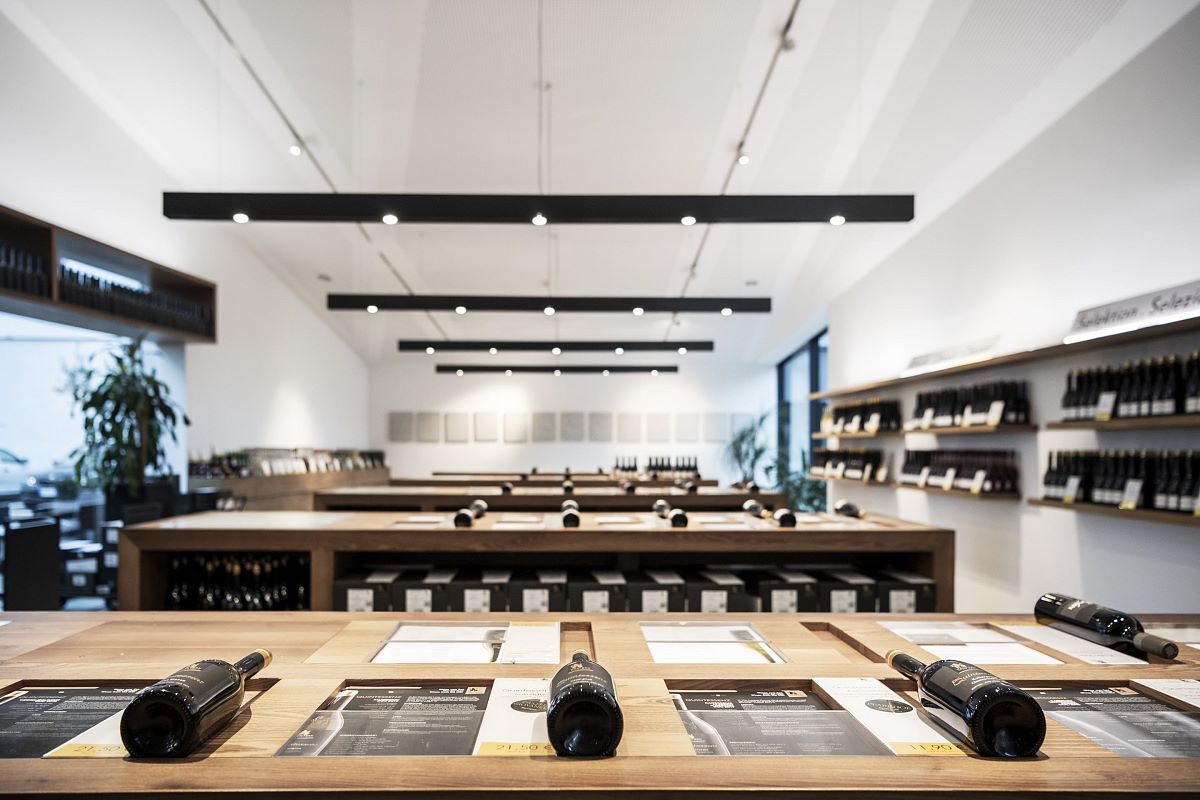 葡萄酒中心位于南蒂罗尔葡萄酒之路上。在其宜人的氛围中,您可以近距离观察并购买 Kellerei Kaltern 和 Baron di Pauli 酒厂的产品。酒庄为了凸显自己对风土的执着,以葡萄叶子为主要元素装饰内外,起到了非常明显的标志性作用,让人过目不忘,容易记住。