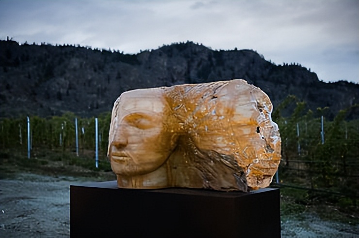 酒庄的正东面立着一尊人面雕像,东临着一大片被称为“贝壳园”的葡萄园子。雕像呈现出一种叫做意大利锡耶纳金的天然大理石颜色,雪白中泛着黄色的沧桑,这种石材被中国人称为“流金岁月”。雕像的人物是希腊神话中太阳神赫利俄斯(Helios),这尊雕像是白先生花了不菲价格的英镑从英国博物馆请回来的,设计师是大名鼎鼎的英国雕刻家Emily Yang。