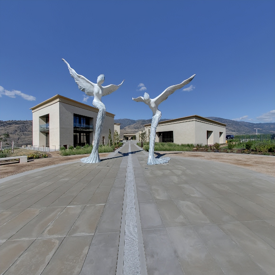 酒庄大门中轴带的一对青铜锻造的高大雕塑—“大地之母和自然之母”。象征着来自太阳神的阳光普照着大地,光合着万物的生长,呈现出一片生机盎然的葡萄酒庄园的大自然景象。这一对雕像是庄主白先生花费巨资邀请艺术大师吴静茹女士为幻影溪酒庄特别制作的珍品。目前全世界相似的仅有三对。