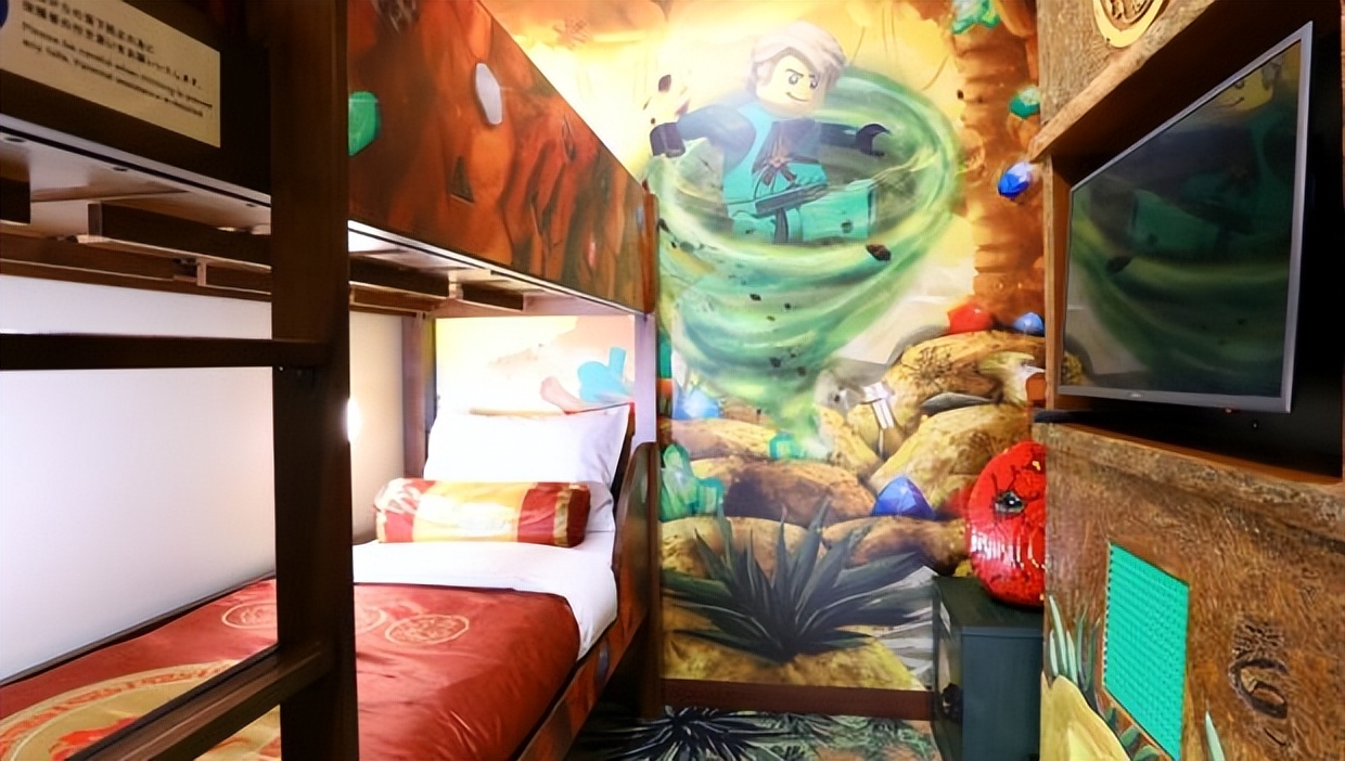 “忍者区”的儿童房类似于“神话般的钻石洞穴”,忍者英雄劳埃德和凯在其中守护着闪闪发光的宝藏。集成在儿童房中的乐高积木板则为住宿带来更多的快乐。