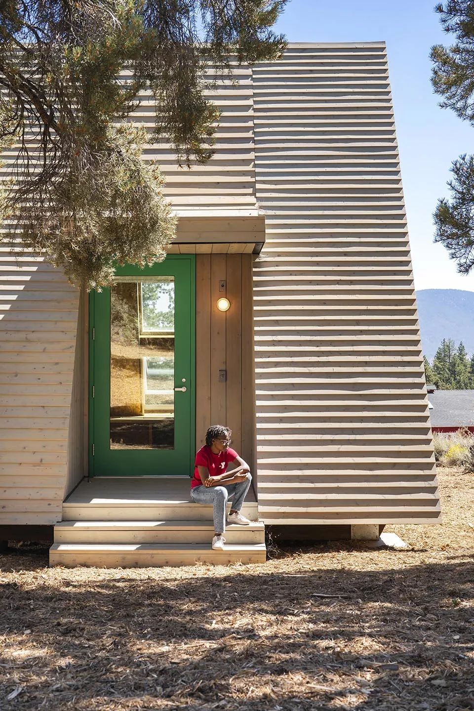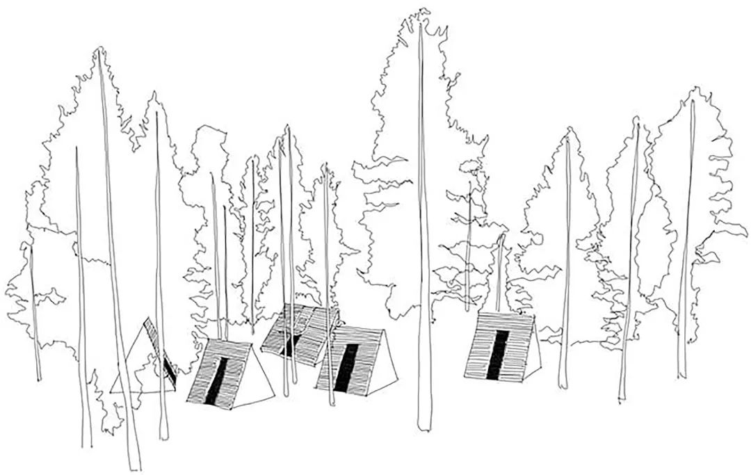 在生态敏感的森林中插入建筑物是一个独特的挑战。比例、形态和材料都需要精心挑选,与周围的松树和灌木丛相得益彰。加高结构基础,精细布局建筑,以尽可能地降低树木的砍伐数量,并尽量不对水流和现有动物路径产生干扰。