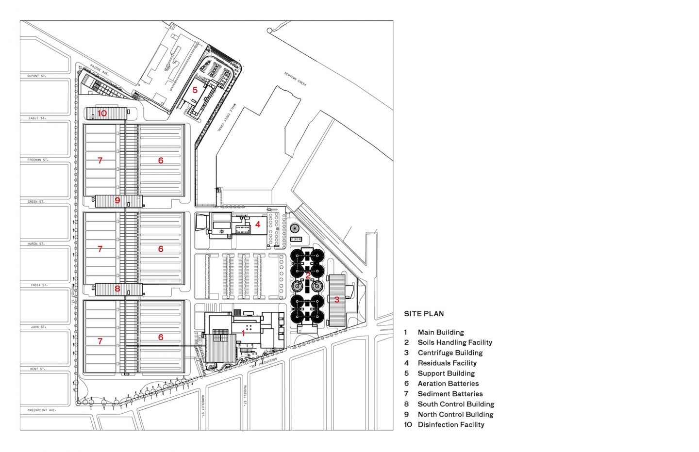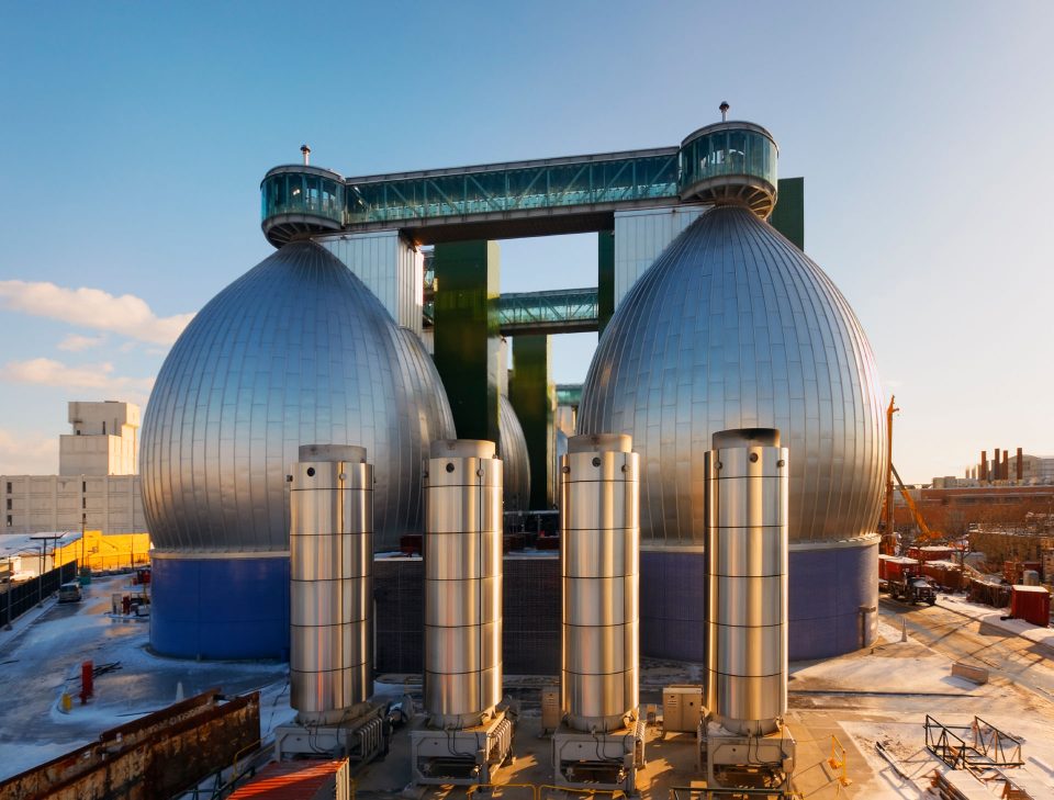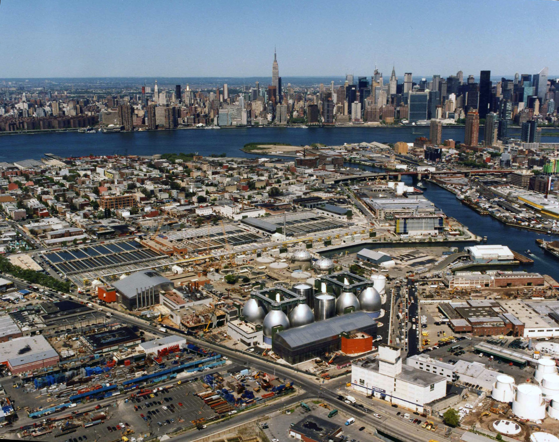 作为纽约市14座污水处理厂中最大的一座,纽顿溪污水处理厂占地约 15,000 英亩,为大约100万人提供服务。2003 工厂的产能扩大到每天 180 万立方米,处理区域从 16 个增加到 24 个。自 2010 年以来,它的八个高达42.7米的金属“消化蛋”在夜间被蓝光点亮,成为当地的地标。在改造期间,工厂一直保持全面运转。
