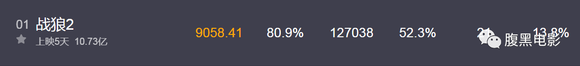 《战狼2》上映五天了,到目前为止累计票房10.73亿。