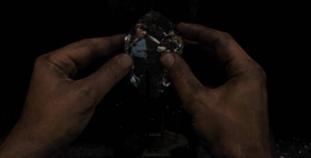 接着男主(哈维尔·巴登 饰)拿出一颗类似水晶的东西摆放好。