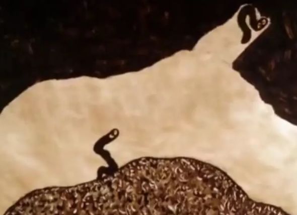 在短片的最后,小蚯蚓自己一个人打了一条长长的通道一直到了地球的另一端。