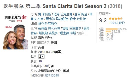 「返生餐单」是由Netfilx出品的丧尸喜剧,每季10集,每集30分钟,做到了真正的短小精悍。