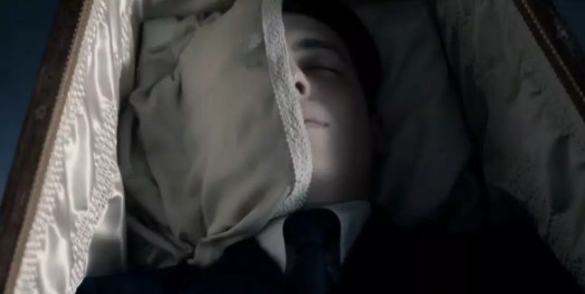 棺椁里的杰克在白布遮盖下仅露出的半张脸。