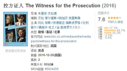 2016年,BBC又推出了电视剧版「控方证人」。