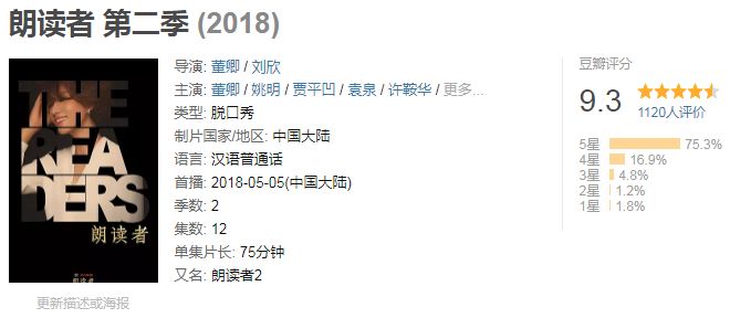 9.3的《朗读者第二季》,它一直在我的必看片单中