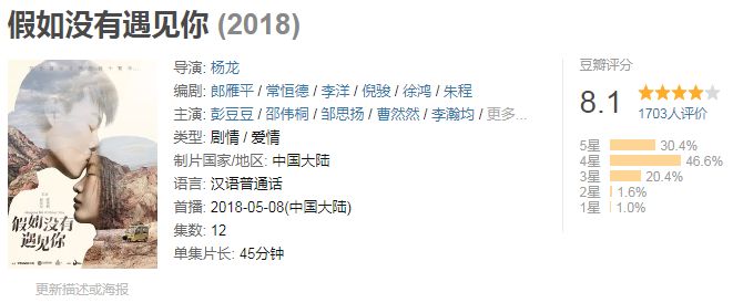 目前,「假如没有遇见你」在豆瓣上拿到了8.1分的成绩。
