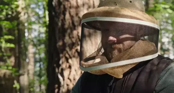 女儿带他来到蜂巢前,告诉他用心去感受蜂巢的温度。