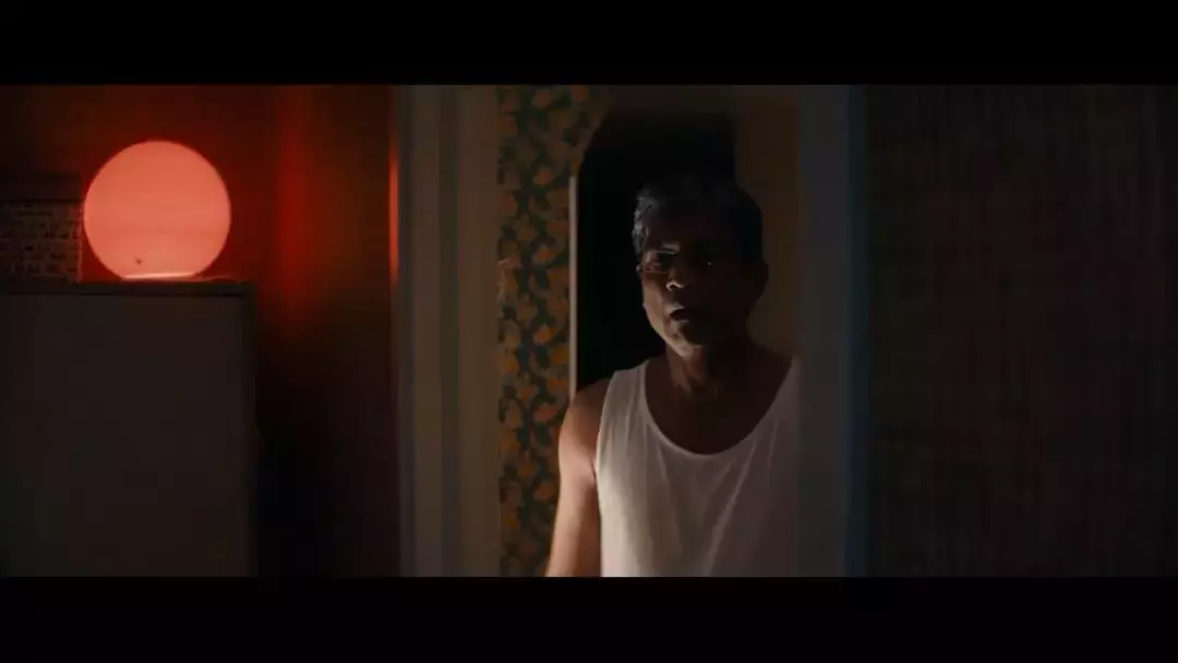 在影片一开始,在妮莎的视野之外,父亲在暗处监视她的眼神让人不寒而栗。