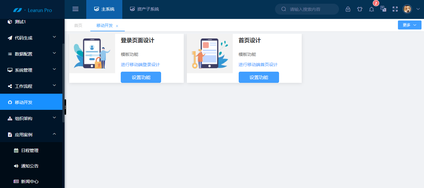 LeaRun移动端开发框架可在手机端、小程序端、微信公众号端口、H5页面端等各种智能移动终端来搭载LeaRun低代码开发平台所开发出来的各种APP运用。通过移动端APP,使用者可以很方便快捷的在手机上实现工作办公,随时随地掌握公司企业的运营管理情况,并迅速做出决策管理和优化调整,直观的感受到智能化、信息化管理给企事业单位所带来的各种效益提升。