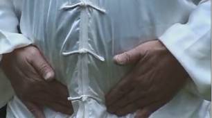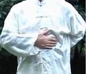 5.以脐为中心,以右手由左下向上顺时针绕摩脐腹21次。