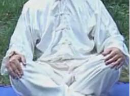 9.自然盘坐,两手握固,分按两膝上,两足趾稍收屈。将上身自左前转向右后21次,然后再自右前转向左后21次。摇身时可以逐渐将身向前后倾出,即向前摇时,可将胸肩摇出膝前,以至摇伏膝上,问后摇时,也尽量后仰。