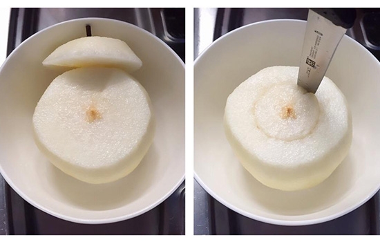 做法:先把梨挖去核,将蜂蜜填入,加热蒸熟。每日早晚各吃1个,连吃数日。