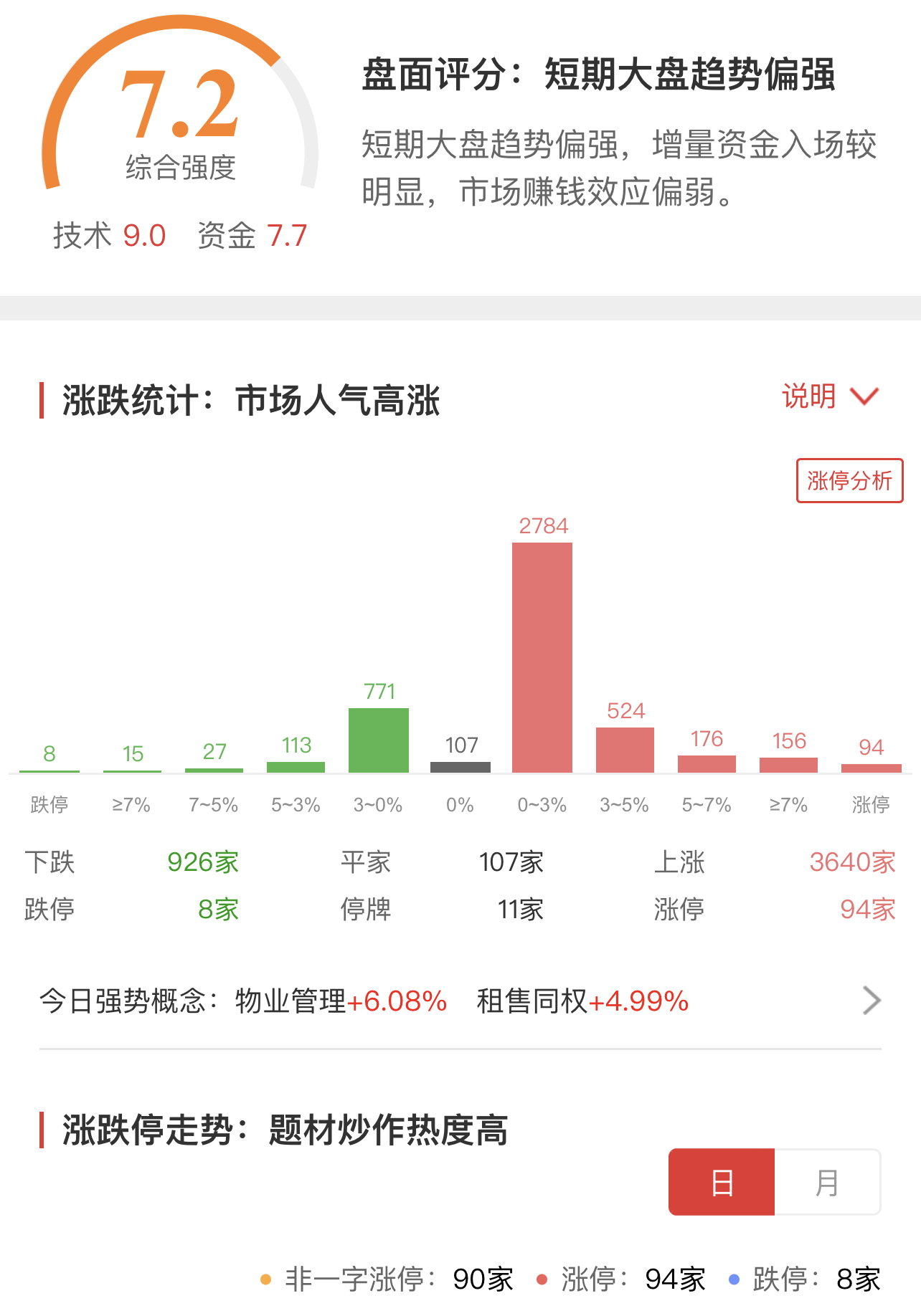 地产股早盘再掀涨停潮,天保基建14天11板,中交地产6天5板,信达地产7天5板,海泰发展5连板,南国置业、光明地产等超10股涨停,在新冠药板块大幅度分化后,资金反而去到了房地产板块进行抢筹,对于目前的弱势行情而言,机构资金也是抱团取暖的模式。医药商业股震荡走强,中国医药2连板新高,人民同泰拉升封板,鹭燕医药、老百姓等纷纷跟涨,新冠药板块个股有所分化,但是从整体市场来看,2条确定性主线还是受到机构资金青睐,在没有“降温”之前依然可以关注个股的低吸机会。券商股临近午盘再度拉升,北向资金全天净流入为主,两市成交量有所增长,创业板指数一度涨逾3%,再度带出一轮回暖的赚钱迹象,目前依然看成是下跌中的反弹,即使进场也是短线操作思维,中长期来看还是要等待二次探底结束再加大仓位参与。