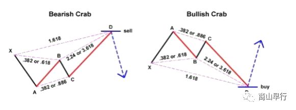 蟹形态是最为精确的,因为该形态能够测量出潜在的反转区域水平位,而通常反转目标为XA的161.8%延伸位。