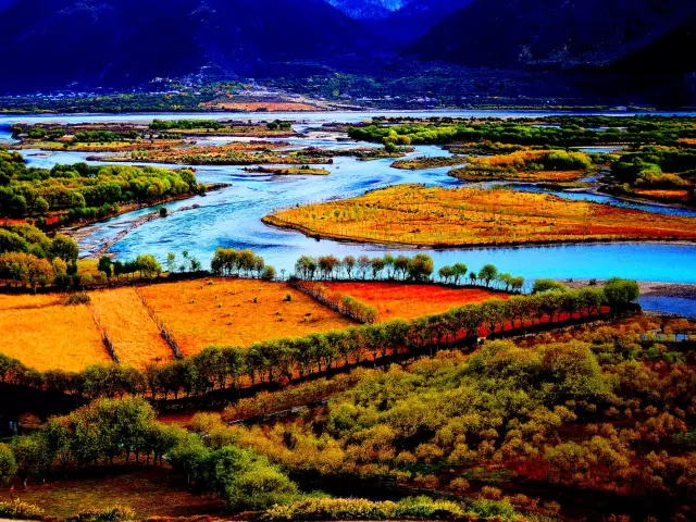 318川藏公路和林拉高速几乎与尼洋河全流域并行,两条景观大道的取舍很难。一旦林芝的秋天模式开启了,盛秋便即将来临。晨昏之时,水面流光耀金。两岸秋色瑰丽多姿,层林尽染....