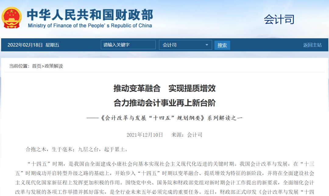 内容摘自财政部网站《会计改革与发展“十四五”规划纲要》系列解读之一