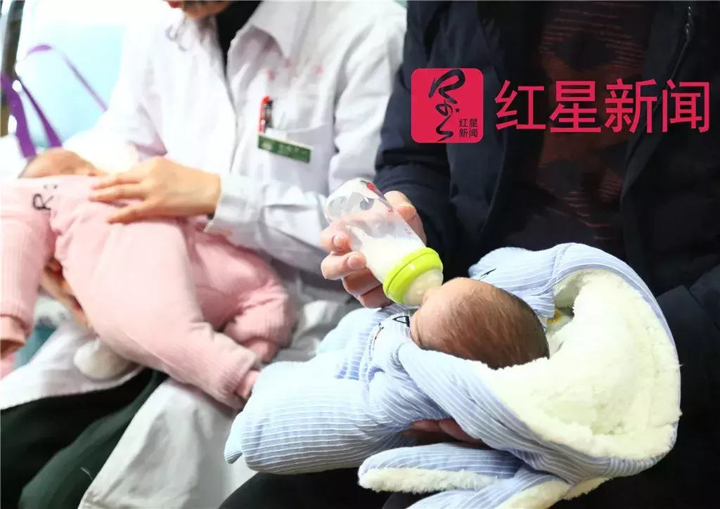 医生和护士都围拢过来,欣喜地打量着两个小生命。没过一会儿,哥哥醒了,哭闹起来,庞方国赶紧拿过奶瓶给小孩喂奶。“看你动作有点生疏,不够熟练啊!”一名护士见庞方国喂奶的姿势还不够自然,笑着调侃说。庞方国一听笑了:“哥哥胃口大,要吃两份的!”