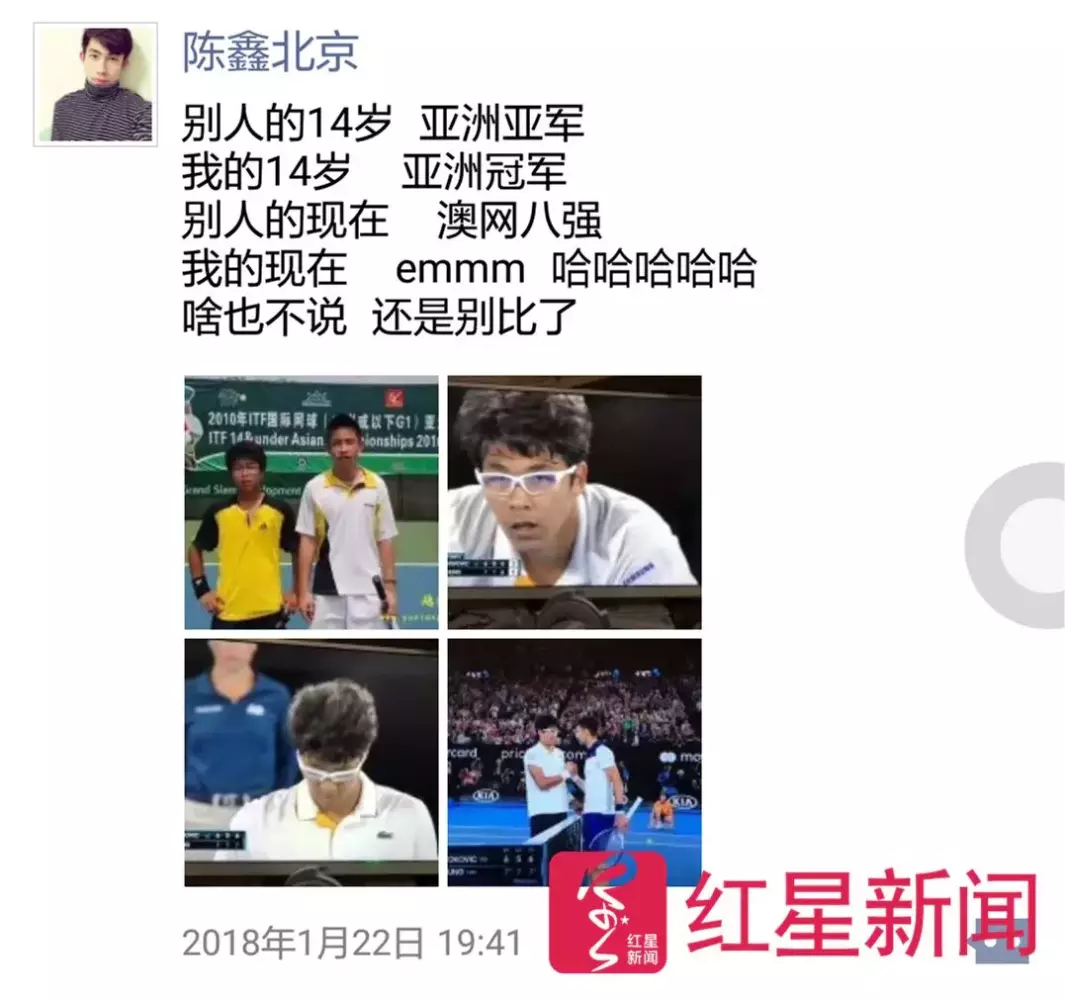 随后,这条朋友圈内容被疯狂转载,并引起不少球迷围观热议。红星新闻记者联系上了身在北京的陈鑫,如今他在北京某俱乐部担任青少年网球陪练。