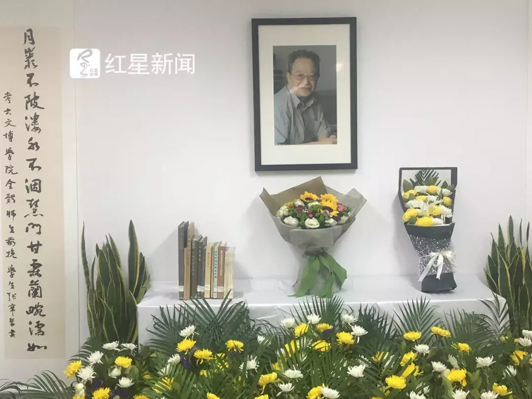 2月2日上午,在北京大学红五楼,红星新闻记者看到,宿白先生的灵堂陈设简单,遗像、挽联、吊唁者送来的鲜花之外,在灵堂前整齐地摆放着宿白先生的十余册著作。李志荣说,宿白先生“96岁的生命凝结成了几部书”。