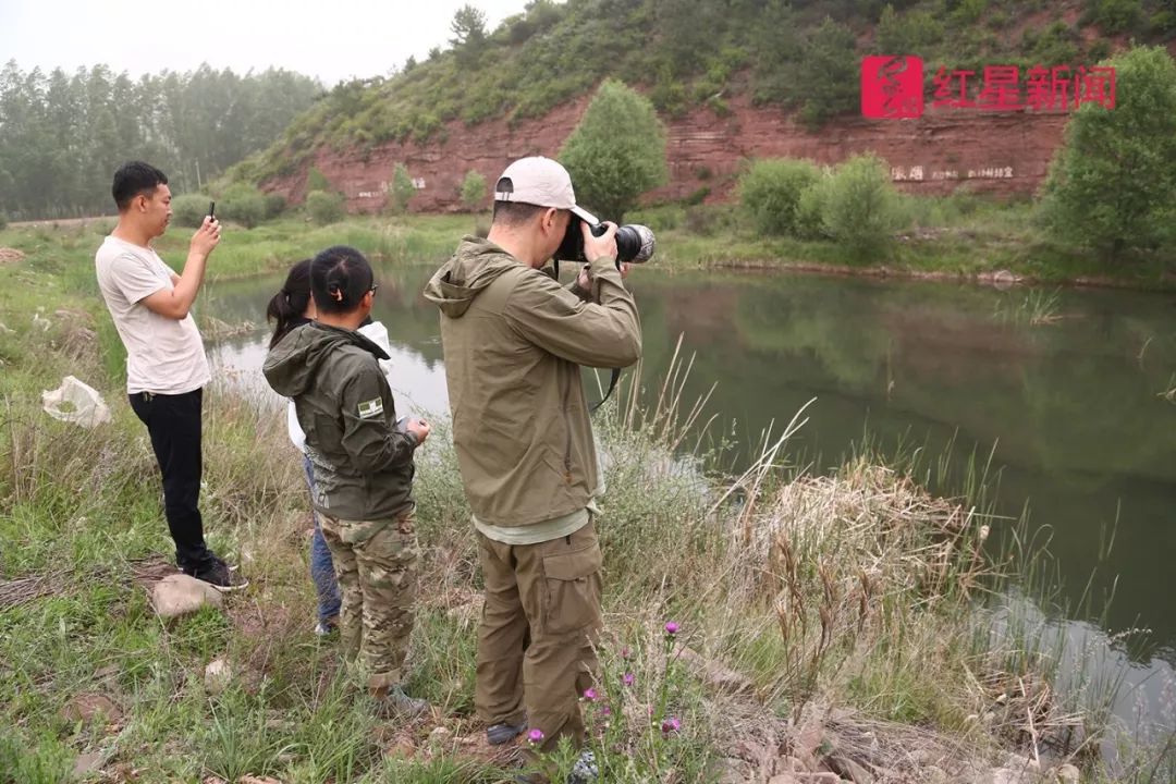 随后他又“捕捉”到了其他动物:长着红色长喙的蓝翡翠鸟,在溪边捕食小鱼儿;苍鹭飞行的姿态很优雅,低低地盘旋;水塘里有大群林蛙的蝌蚪,他干脆下了车,走到水边观看。
