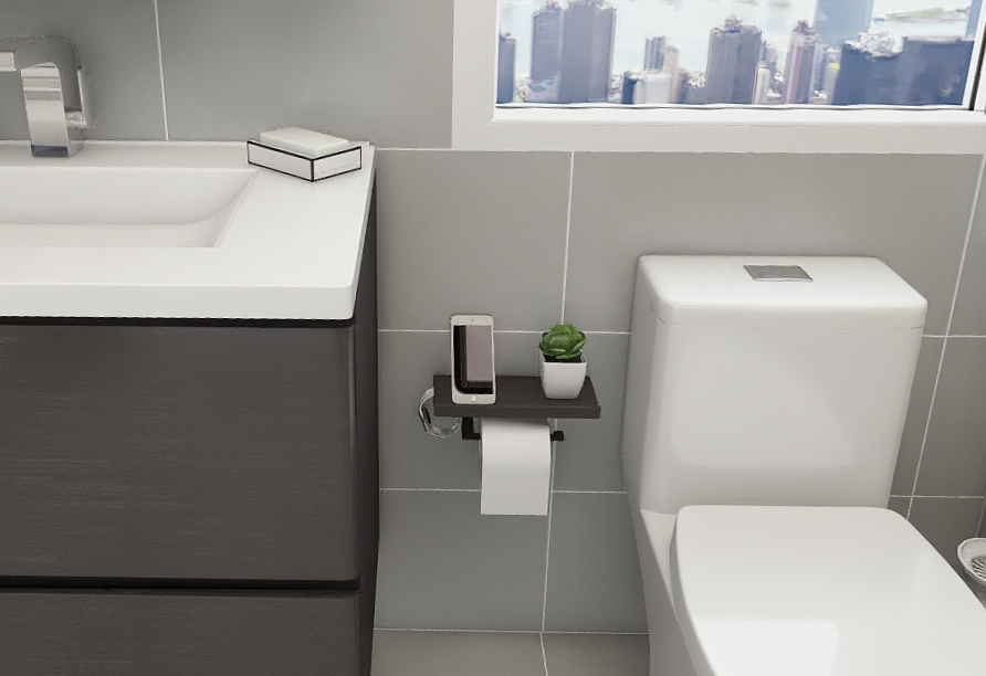 马桶旁的放置台可以说是对手机“重度爱好者”十分友好,有了它再也不用担心手机无处可放。