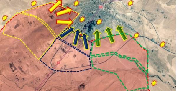 在南面,他们可有效遏制美国新扶植的反对派武装,新叙利亚自由军继续扩张渗透;在北面,此次参与进攻的第五军团,则可与拉卡省的精锐老虎师兵合一处;向东当然就时直接攻入代尔祖尔省。目前下一步最可能实施的,应该就是第二种向北。