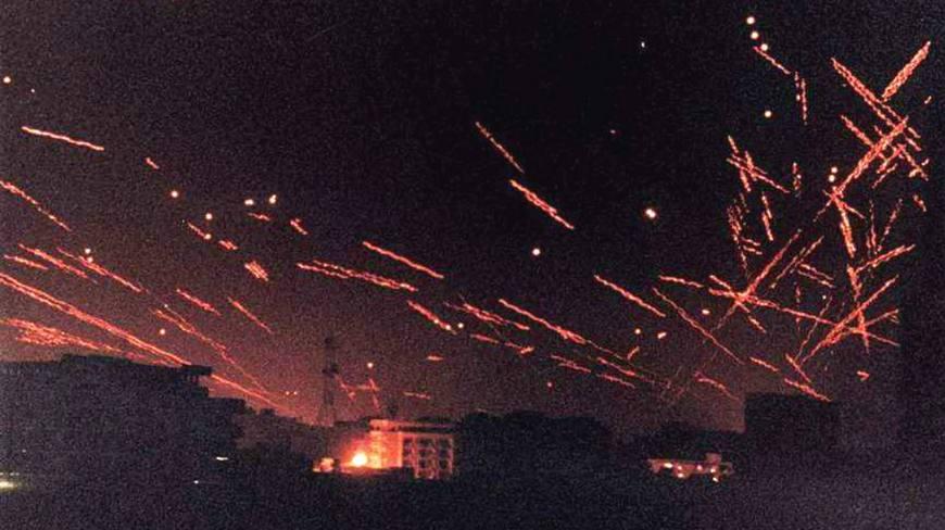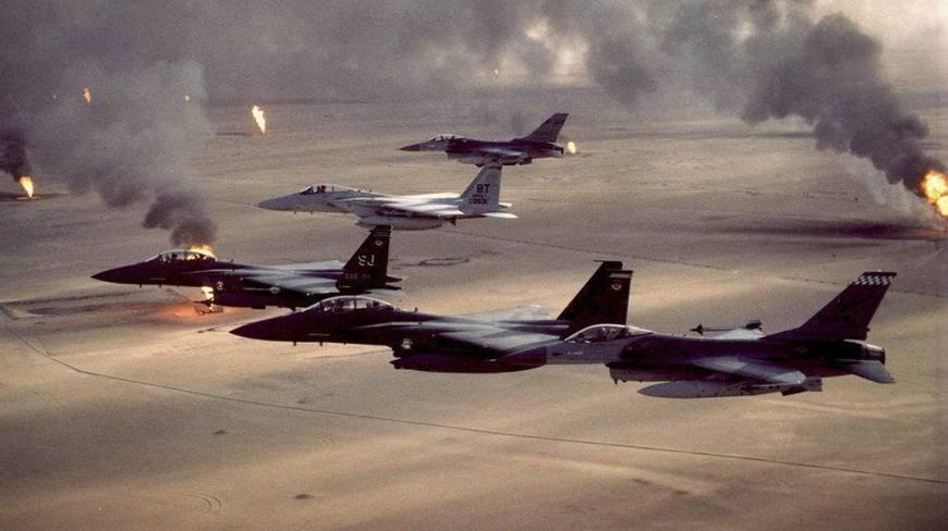 在这种情况下,八架从波斯湾萨拉托加号航母上起飞的F18、F14战斗机,开始执行战场扫尾工作,这些美国飞行员心情似乎都很惬意,感觉好像不是在执行轰炸任务而更像是旅行,而且他们大多数都是第一次参与实战。