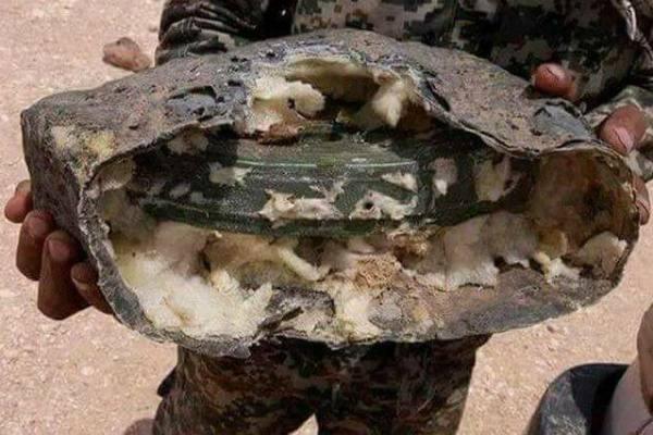 从照片上可以看出,去掉该型地雷外部伪装后,中间填充了一些带有缓冲的海绵,如此一来坦克和装甲车履带在压上后,松开的一刹那便会瞬间引爆,对车辆以及紧随其后的步兵都能造成较大伤害。