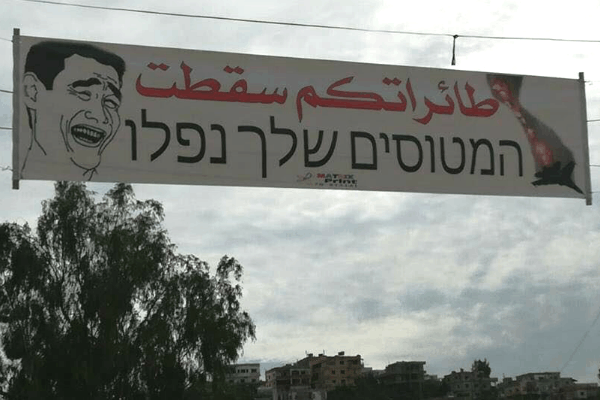 这还没完,就在与以国接壤的黎巴嫩南部一座城市中,有人竟在大街上打出了一张海报,并配以暴漫中姚明广为人知的表情包,大意是说“看,你们的战机也被击落了把”,字里行间透露着浓浓的嘲笑意味。