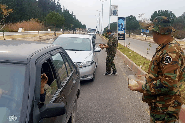 所以曾经不可一世的以色列空军,竟然被叙防空部队一举揍下,当然要大加利用并宣传,从而鼓舞前线与作战的政府军士气。这不就在大马士革周边区域,不少路边检查站的士兵已将突击步枪背在身后,向过往车辆发起糖果来。