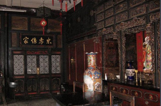 绕过影壁,走过游廊,便进入了白家大院的二门。门内一色青砖墁地,院子是呈方正对称,院落高出巷道数尺,主房又高出院子尺许,这样不仅能达到很好的采光,还能保证排水的通畅。进了正房,迎面是用木雕彩绘而成的竖柜、顶厢。屋内还有两个椿凳,一切都那么传统。正堂西边沿扇罩放神主桌(供祖先),沿扇罩阳面有两米多的火炕,这在寒冷的北方是非常适用的,这种结构使空间的利用非常合理充分。