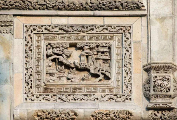 民间工匠将这种具有丰富文化内涵与寓意深刻的美好祝愿赋予了丰富的想象力,将其绘出图案来,然后再按照图案与工艺程序进行制作。砖雕对整座建筑起着点题作用,不仅突显着户主的身份和意趣爱好,也载负着各个时代不同的文化传承,留下了时代深深的烙印。