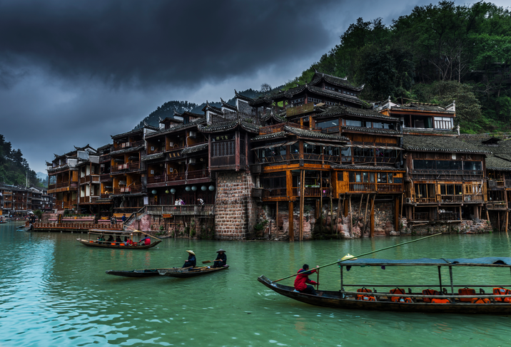 土家吊脚楼不管是外形和内部结构,都呈现出恰到好处的比例关系和分层次的有序变化的对称。无论远眺近览,平视仰瞻,总使人赏心难敛,欲罢不能。走进湘西土家族山寨,一座座精巧的吊脚楼临水而立、依山而筑,鳞次栉比、颇为壮观。