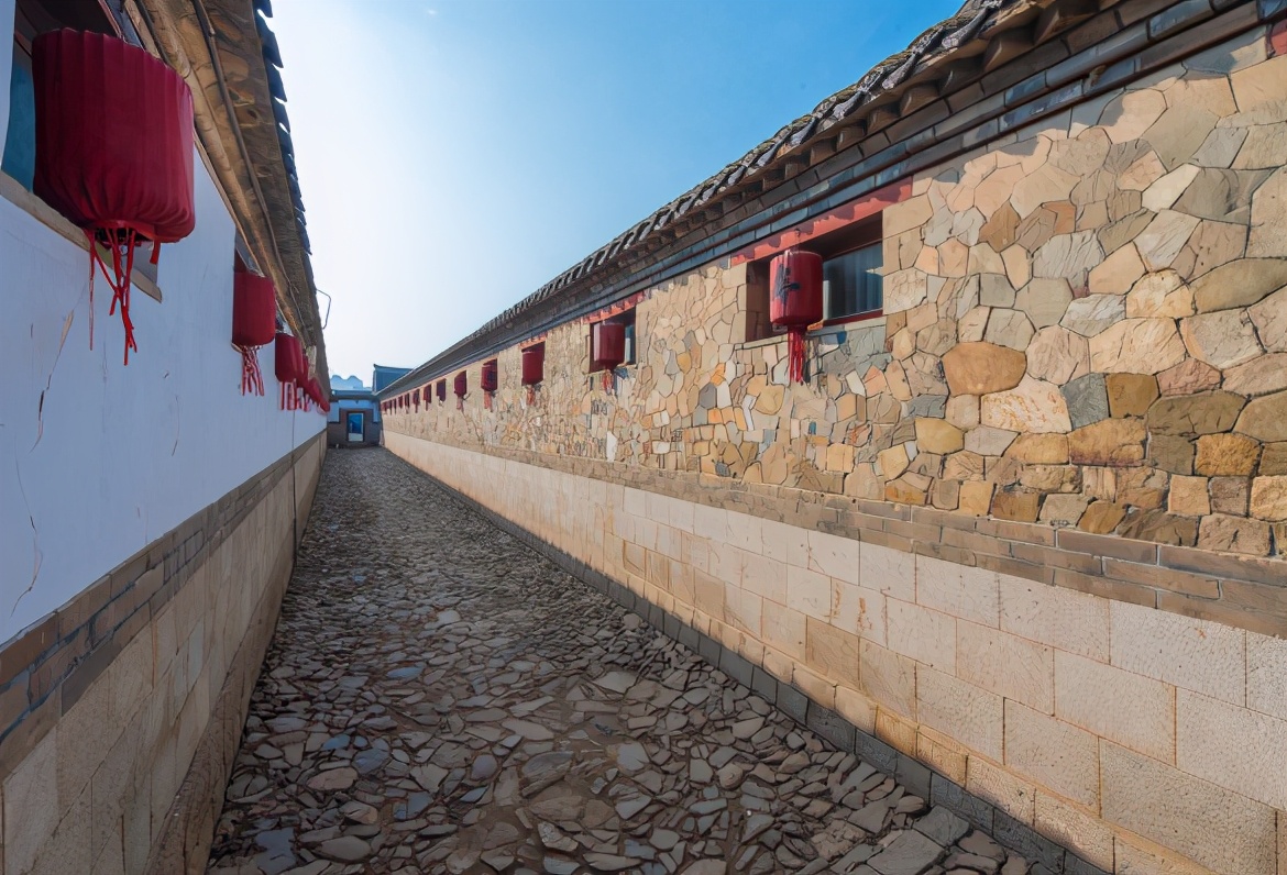 纵观重重四合院相叠,横看条条通道相间,层次清晰,主次分明。院内立体建筑多属二层楼房,房舍多是雕梁画栋、明柱花窗、浮雕图案,栩栩如生。庄园建筑鳞次栉比,富有特色,色彩斑斓的“虎皮墙”,用形状各异、色泽不同的河卵石垒砌而成,“制钱莲花图”、“莲生贵子”等图案,精美绝伦,叹为观止。“三大怪”建筑更是耐人寻味,引人入胜。“烟囱立在山墙外”便是其中一怪,它看似一个小小楼阁,凌空耸立,别具特色。