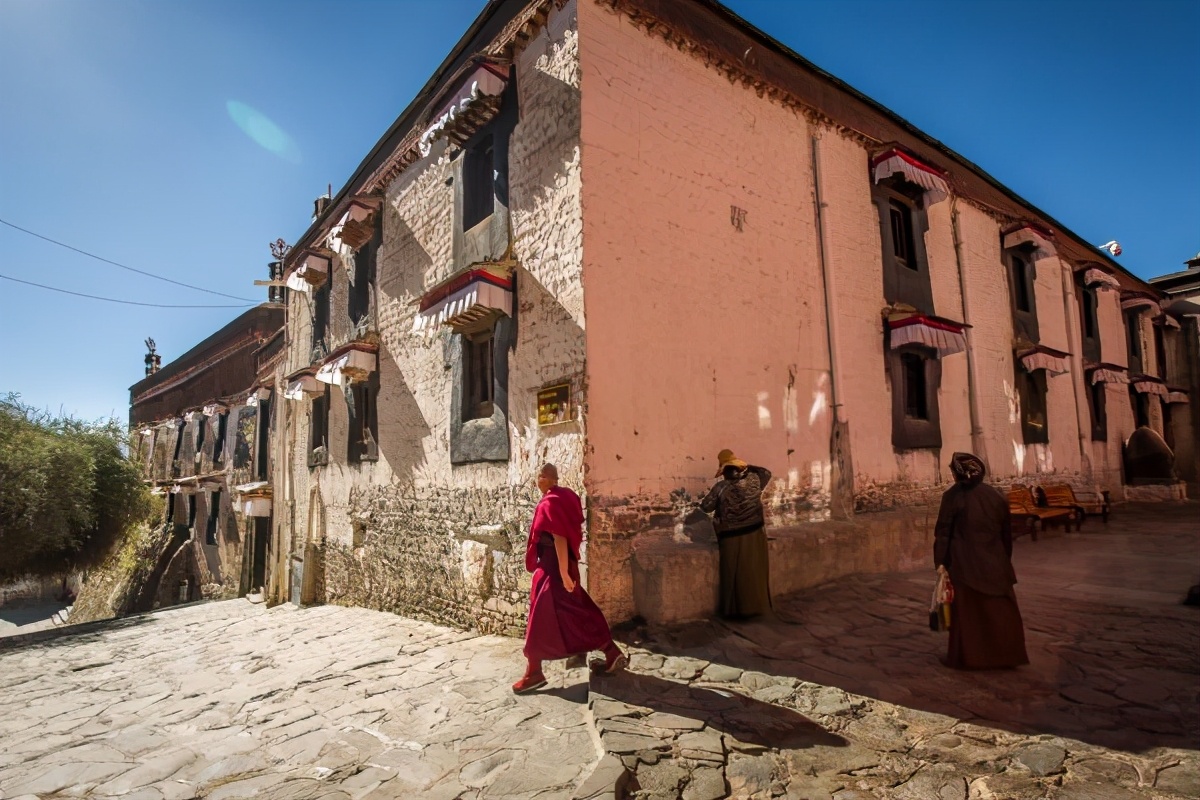 红色靓丽的边玛墙,是西藏建筑上最别致的存在。藏族先民们对于大自然的灵活运用和千百年来的藏族文化,无一不凝结在它身上。据考证,最早使用边玛草砌墙的是山南的桑耶寺。据说,当时的战士无意间将弓箭射向边玛草丛,箭竟然插入边玛草丛,既没有折断也没有掉落,聪明的藏族祖先便想到把边玛草砌在堡垒上当掩体,这样打仗的时候敌人把弓箭射过来,箭就可以直直插进墙体里,既不会折断也不会掉落,起到了“草船借箭”的作用。