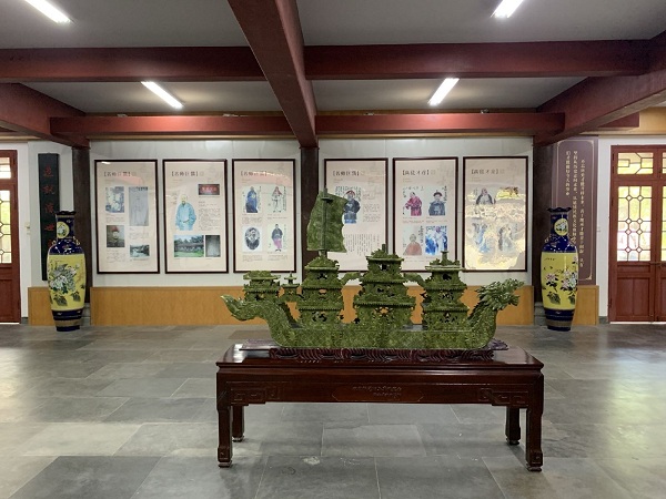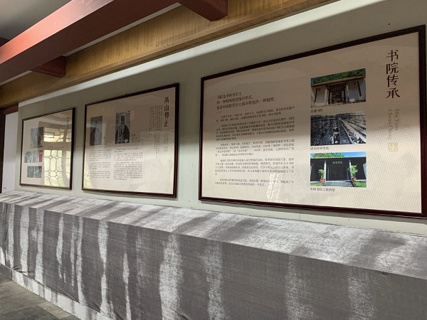 二楼上正面有走廊,楼顶为浅绿琉璃瓦。木梁飞檐,雕刻着龙头,花木与走兽。一楼大厅朱红圆柱,铺磁砖地板。厅内摆设着八仙桌,古式坐椅。厅内墙壁上挂着清代书院掌教谢宝的手迹书简复印件:树老花偏嫩,春融枝叶茂。客窗幽静处,明月与绸缪。据说这是谢宝晚年之作。