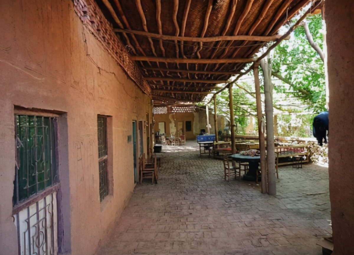 民居建筑具有以户外活动场所为中心的特点,“阿以旺”式、“阿克赛”式的民居,均是户外场所在中间,周围环以带外廊的房屋,形成了宅院的内向性风格。注重庭院空间,使居室内外互相渗透交融,区域划分细化了生活空间的功能分区,同时形成从户外到室内的多层空间过渡,丰富了空间层次。