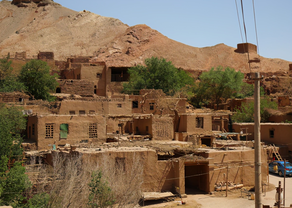 维吾尔族昼夜温差大,住房多利用当地土质粘结性强、容易脱水成型的特点,就地取材,创造了隔热性能良好的平顶土坯住宅。它们由厚实的土墙和拱式的房顶组成,院落对外封闭,保障住户私密,躲避沙尘侵袭,并抵御夏季的高温和冬季的寒风,对内则开敞通透,通过院落布局,营造舒适宜人的庭院微气候环境。