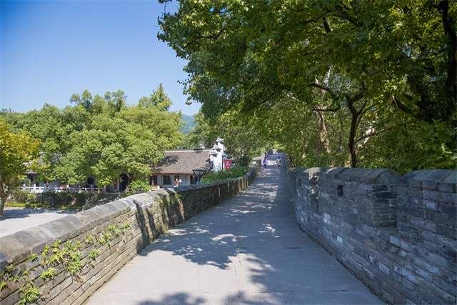 古城墙尤其是北固山一段,建于危崖之巅,飞舞盘旋,敌台林立,雉堞连云,城楼高峙,与北京八达岭相较,可称双绝,称之为“江南八达岭”,并不过誉。更有其独特之处是,临海古城墙两侧,古木参天,常年苍翠,城墙掩映在青绿丛中,更增添了一分灵秀。