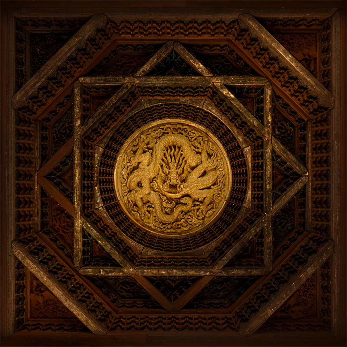 藻井是凝聚在屋顶上的华美符号,它蕴涵了深厚的中国传统思想,也为中国古代建筑增添了无穷的意味。中国古代建筑中的藻井结构,随着建筑技术和社会的发展,经历了一个从简单朴素到复杂华丽的演变过程。