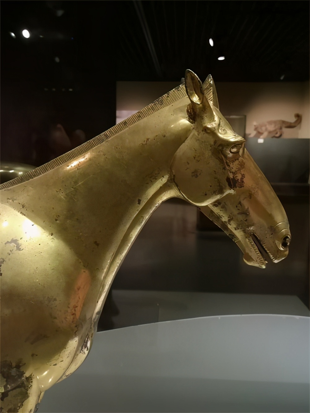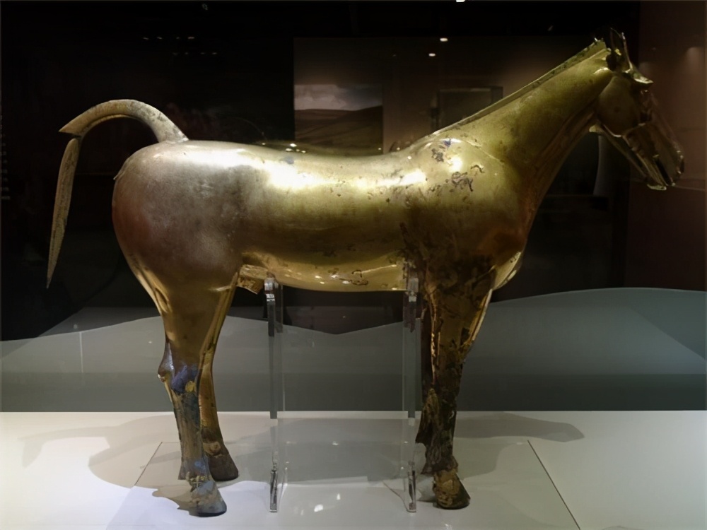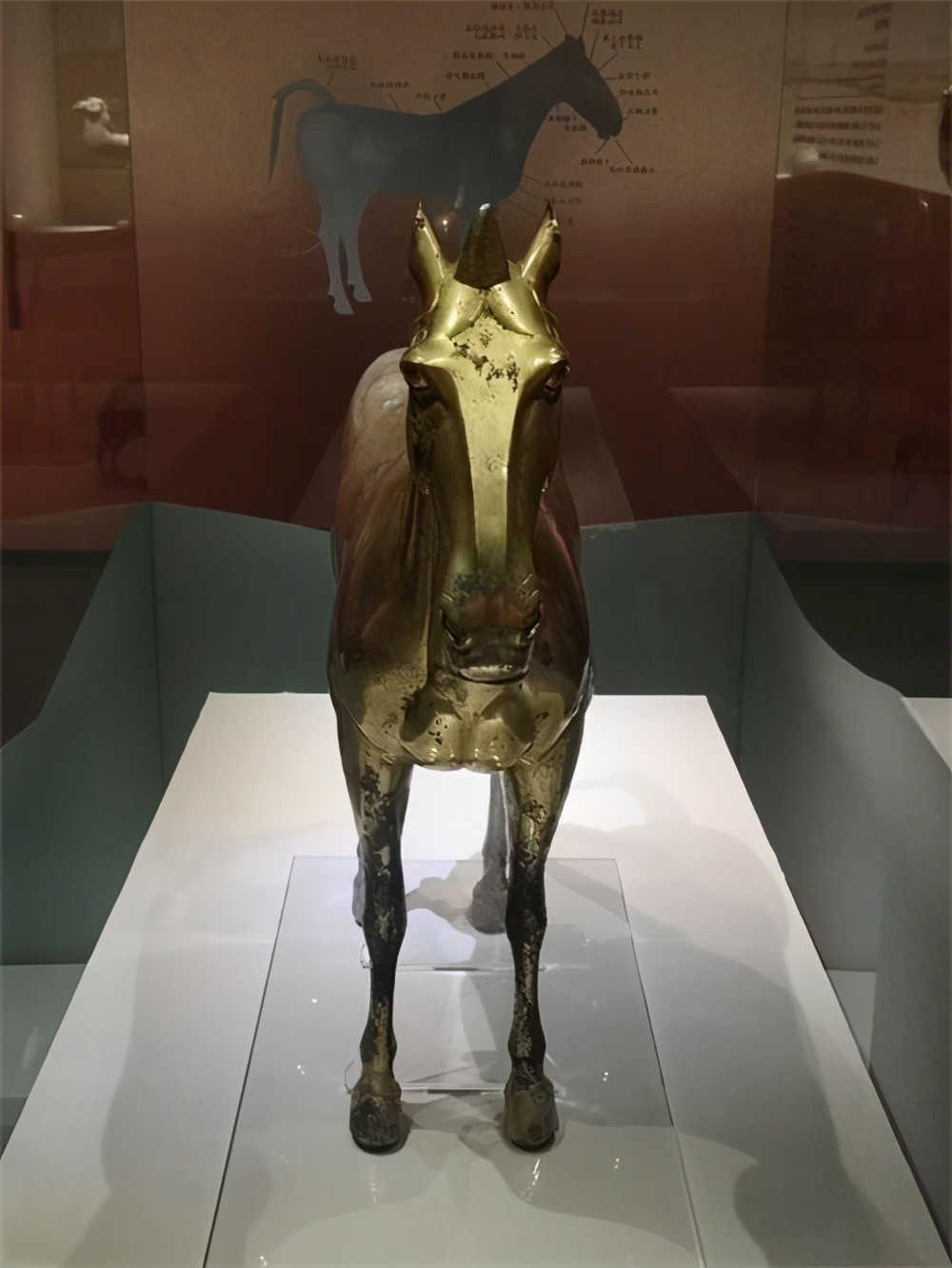 它在古籍中被称为“金马”,系以西汉时大宛产的汗血马(又称天马)为模特,精制而成的,价值千金。既是汉代养马业兴盛的体现和汉代马文化发达的见证,也是大汉帝国时代精神的缩影。